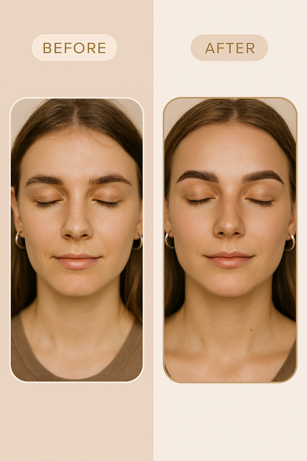 1. Sophie – Frisse vorm en natuurlijke balans Sophie’s wenkbrauwen zijn professioneel geëpileerd en subtiel gevormd om haar gelaat zachter te laten uitkomen. De behandeling werd afgerond met een hydraterende verzorging rond de wenkbrauwzone voor een frisse, natuurlijke uitstraling.